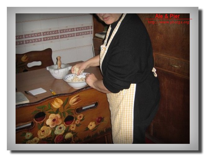 Ale impasta per la preparazione dei canederli alla trentina (parte al formaggio pecorino sardo e parte con speck) e della torta di patate "crue"