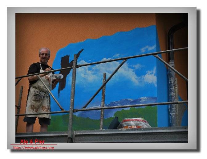 L'artista Roberto Nezzi di Verona decora la nuova meridiana in via di Fassa, "Casa del Tullio - Ciocio".
