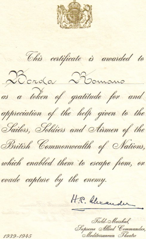 Brevetto Alexander conferito a mio padre Romano Borga per meriti...