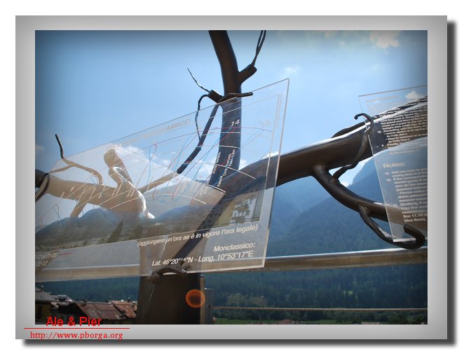 Opera dell'artista Luciano Zanoni di Caldes (TN)  la nuova meridiana panoramica in Piazza della fontana a Monclassico.